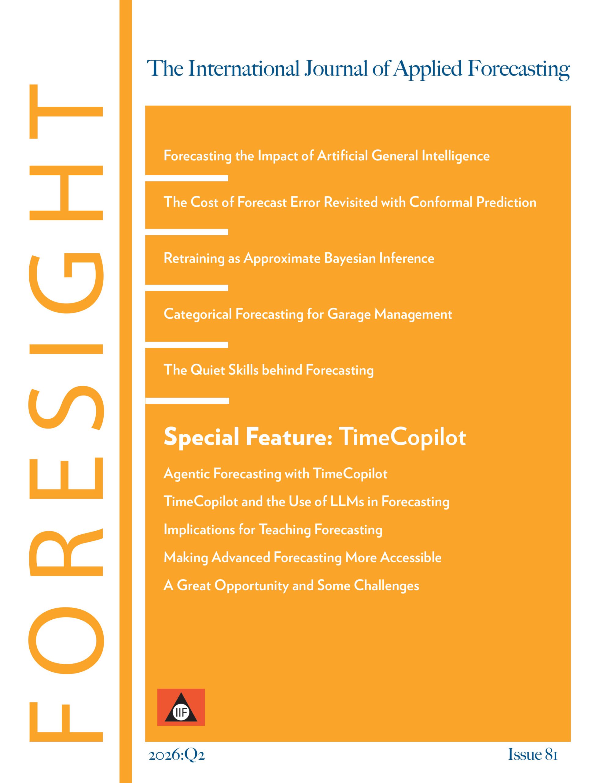 Thank you for your interest in Foresight: The International Journal of Applied Forecasting. Please complete and submit the form below to begin your free Foresight subscription, giving you online access to read and download each new issue. For access to the complete Foresight archives (going back to Issue 1 in 2005), become a member of the International Institute of Forecasters.